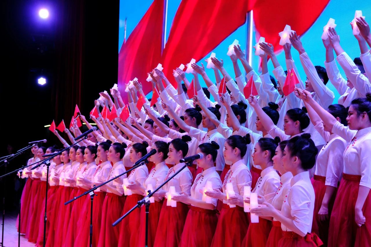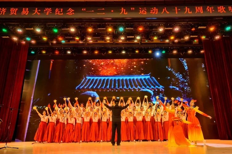 合唱旋律大气恢弘,歌曲渐入高潮。“灯火里的中国青春婀娜,灯火里的中国胸怀辽阔;灯火漫卷的万里山河,初心换回了百年承诺。”和谐动人的曲调扣人心弦,一段难忘的奋进故事正在娓娓道来。百年风雨兼程换来如今的岁月静好,灯火里的中国,正是中国共产党带领中国人民实现伟大梦想的生动缩影。中国共产党初心不改,以绵延灯火传递温暖与光亮,开启了灿烂辉煌的新时代。嘹亮的歌声唱出劳经学子心中激荡的中国梦,是对美好未来的坚定信念。