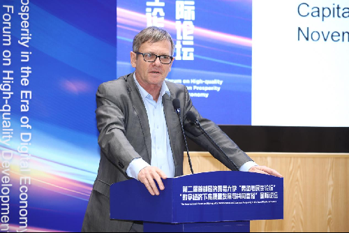 Scott Douglas Rozelle发表了“Preparing for the Digital Economy in China Will Require Dramatically Improving Early Childhood Development in Rural China”主旨演讲。罗思高教授鼓励社会更关注婴儿的人力资本积累,强调实现共同富裕目标的关键从0到3岁开始。他回顾了之前对2万名城市和农村4年级学生进行的调查数据并指出,当前城乡教育差距不仅仅源于学校或教师资源的不均衡,更关键的是婴儿时期的发展不平衡。他认为,仅仅改善学校条件还不足以解决问题,婴儿期的营养、健康与认知开发问题至关重要;只有通过全社会共同努力,确保每个孩子在0到3岁这一关键时期都能得到充分的关爱和发展机会,才能有助于实现共同富裕的目标。他呼吁,政府、相关社会组织和学术机构共同合作,更加关注婴儿经济,以应对中国面临的人力资本挑战。