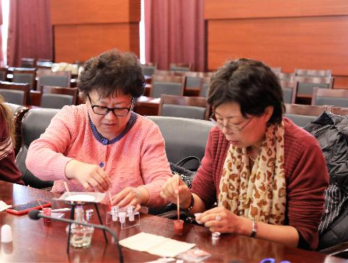 在尝试制作过程中,老师们逐步进行材料准备、造型、入模、出模、包装等一系列工序,期间还不忘彼此交流制作感受、互相观摩实践作品,有的是玫瑰花形状,有的是桃心形状,现场气氛热烈、轻松惬意,充满欢声笑语,也让每一支DIY口红都显得格外珍贵。