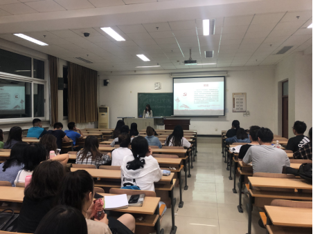 课程由党支部书记主持。培训课程开始后,支部书记首先引用了市委教育工委发布的《关于进一步做好在大学生中发展党员工作的若干意见》中的一段话,为在座的入党申请人、积极分子阐明了在大学期间发展党员的重要性。紧接着,指出本次课程分为“入党流程”、“入党初心”两部分内容,课程开始第一部分,支部书记就从递交入党申请书开始直至成为正式的中共党员的完整流程包括每阶段推优必须符合的条件以及所需要参加的培训课程都进行了细致的讲解,并解答了在场同学关于入党流程中的疑问。