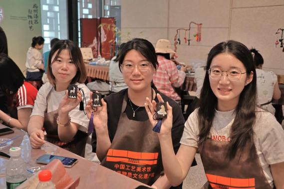 在中国工艺美术馆(中国非物质文化遗产馆),党员们亲手制作扬州漆器髹饰。扬州漆器为中国传统的特种工艺品,历史悠久,风格独特,现代扬州漆器制作工艺丰富,颇具东方神韵。党员们在工作人员指导下,打磨、铺胶、抛光。打磨木胎时的粗糙触感、调配生漆时的天然清香、镶嵌螺钿时的毫米级精度把控……髹饰的木纹光泽在无数次打磨中变得清晰明亮。通过亲手触摸千年技艺,大家沉浸式体验非遗手工技艺的独特魅力。