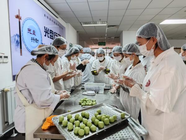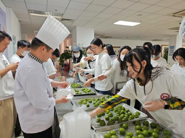 在校本部二食堂,同学们学习并制作了清明节美食—青团。青团,寓意着团圆,同时也为了纪念先人,表示对其的思念之情。在食堂师傅讲解青团制作方法后,同学们上手制作,在实操中感受传统美食的魅力,体验制作的乐趣,传承和弘扬中华优秀传统文化。