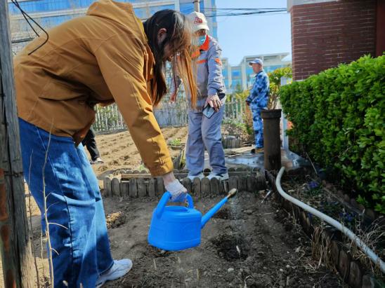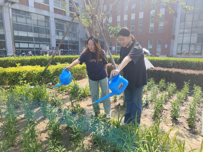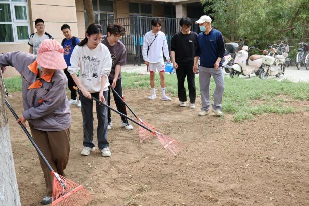 在南门东侧学院劳动实践园,同学们利用两次活动种下新一年的向日葵。第一次活动中,同学们在校工师傅们的帮助下仔细辨别每一株藏匿在园地中的杂草,利用铁锹和锄头,除草、松土、打拢。第二次活动中,通过前期科学规划种植点位和流程,同学们将一颗颗向日葵种子播撒在肥沃的土壤中。汗水于指尖沸腾成诗篇,每一次弯腰与协作都宛如在浇灌成长的向阳花。