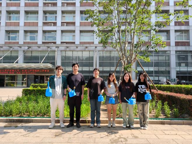 植树节当天,第二届“经贸花开”植树活动如期开展。在后勤老师们的指导下,同学们挥锹铲土、培土围堰、提水浇灌,将一棵棵樱花树苗种在琢玉礼堂外的花圃里。青春在劳动的热浪中澎湃,汗水于校园的土地上挥洒,每一分耕耘都迸发出蓬勃的希望。