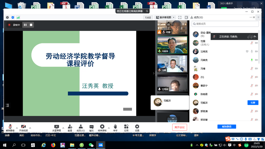 在肯定我院教师教学效果的同时,汪秀英老师也从督导专家的角度提出课堂教学的不足:一是线上课程教学方法和内容的选择;二是课堂提问相关问题;三是PPT课件应用问题。结合现有问题和不足,汪秀英老师从课程体系、课程内容、备课方式、课程思维等多个方面出发,向我院教师讲述提高课堂教学质量的九条方法。最后,汪秀英老师结合自己多年的教学工作经验,对我院青年教师提出一个要求:作为老师,要把每一节课讲的充实,做到博学与深思,成就更好的自己。