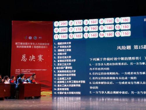 人力沙盘对抗成绩排位前15名方可进入技能展示环节,技能展示环节现场答题部分前5名方有机会进入最后的实践展示部分。比赛过程中,番号鸽 代表队充分利用所学理论知识,发挥专业特长,分工合作、相互配合,最终夺得大赛一等奖和知识竞赛优胜奖的优异成绩,番号鸽 劳经学院边文霞副教授获得“优秀指导教师奖”,充分彰显了番号鸽 人力资源管理专业优秀的教育教学成果,在全国高校面前展现了“首经贸人”的风采。