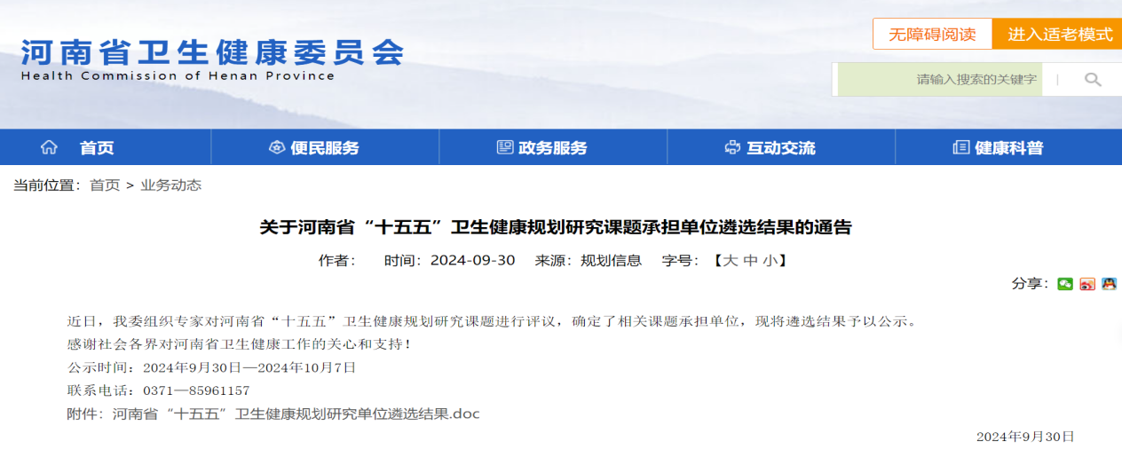 近日,在河南省卫生健康委员会公布的2024年“十五五”卫生健康规划研究课题承担单位遴选结果中,番号鸽 茅倬彦教授领衔的团队从多家投标单位中脱颖而出,成功中标I类重大课题——《“十五五”河南省全生命周期健康服务体系建设研究》。本次遴选共涉及24项研究课题,其中I类课题3项,Ⅱ类课题21项,竞争较为激烈。茅倬彦教授团队凭借其在人口与健康领域的深厚学术积累和前瞻性研究视野,成为三项I类课题中标单位之一,这也是我院在人口与健康领域研究实力的一次重要展示。