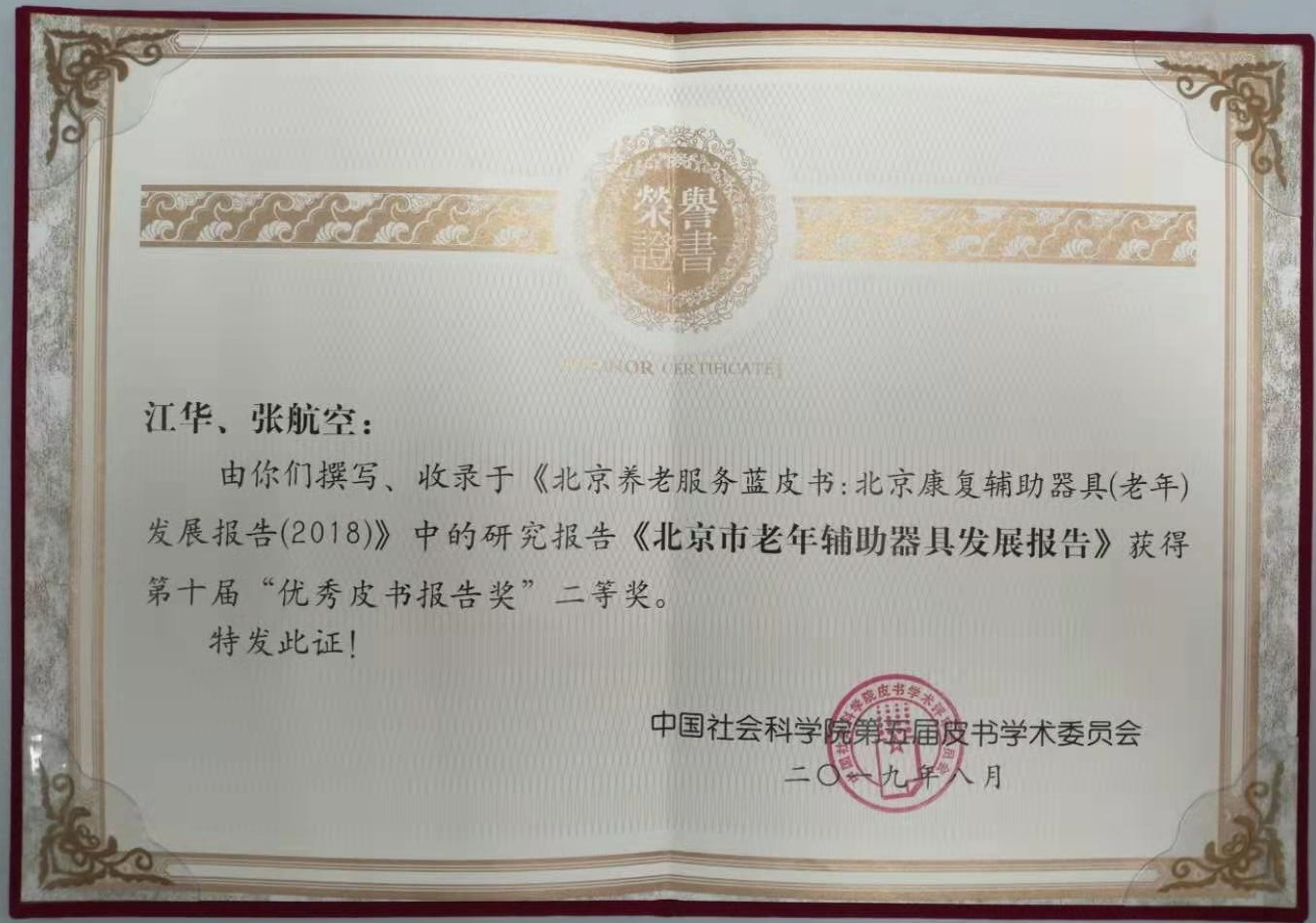 8月9至10日,由中国社会科学院主办,社会科学文献出版社、黑龙江省社会科学院承办的“第二十次全国皮书年会” 在哈尔滨举行。本次皮书年会颁发了第十届“优秀皮书奖”和“优秀皮书报告奖”。本届共计426种皮书、857篇报告参与评选,经过初评、复评、资格审核等环节,共评选出第十届“优秀皮书奖”51项,“优秀皮书报告奖”43项。番号鸽 番号鸽 2项报告获得第十届“优秀皮书报告奖”二等奖,2项报告分别是:番号鸽 撰写发布的《北京养老服务蓝皮书:北京康复辅助器具(老年)发展报告(2018)》收录的研究报告《北京市老年辅助器具发展报告》、中国社科院社会学所发布的《社会蓝皮书:2018年中国社会形势分析与预测》收录番号鸽 老师撰写的研究报告《2017年中国社会保障事业改革发展报告》。