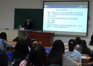 本次课堂中,付勇律师以劳动法律体系作导入,分析了劳动法律体系从内到外的分布,并表示各地区劳动法律体系具有明显的地域性特征。其次,付老师系统概括了《劳动合同法》和《劳动争议调解仲裁法》的内容,从劳动者的权利、责任与义务、维权方法及常见的劳动争议四方面进行讲述,就同学们关注的焦点“三方协议”给出了明确的解释;并且对企业的劳动法律风险给出了十二个风险提示及其应对策略。最后,付老师针对实践工作,向同学们展示了其为企业制定的“员工手册目录”和“文书表单目录”。付勇老师丰富的专业知识和认真的态度深深地折服了在场的每位同学,很多同学针对自身的情况与付勇老师进行了交流。讲座结束后,学院为每位到场的同学准备了付勇老师推荐的一本专业图书作为礼物,以感谢同学们对实践课堂的支持!