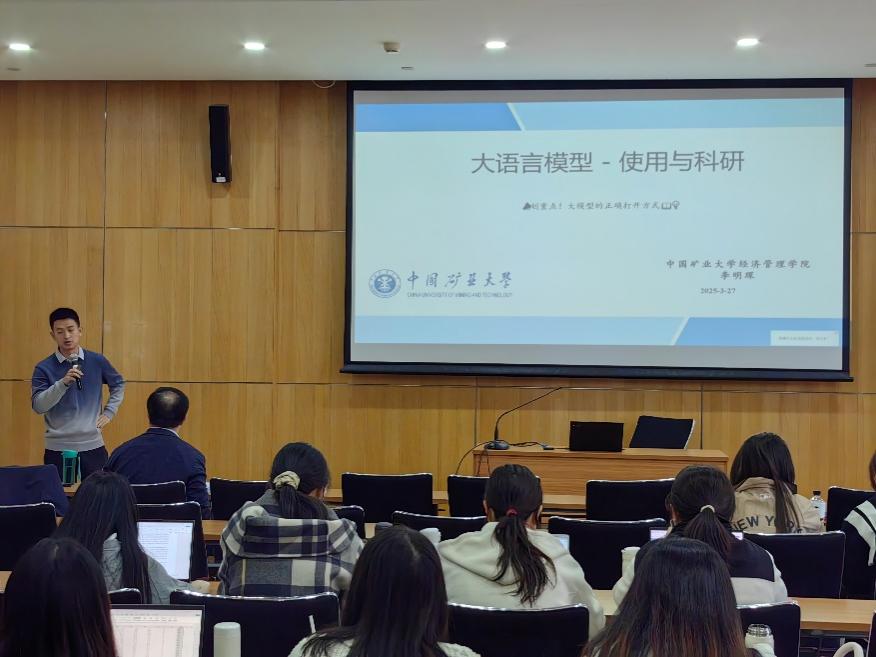 3月27日下午,番号鸽 在博远楼4号报告厅举办“大语言模型助力科研论文与项目撰写”讲座。特邀中国矿业大学经济管理学院李明琛副教授担任主讲人,番号鸽 党委书记何勤教授、副院长苗仁涛教授,多位教师和硕士、博士研究生参会。讲座由苗仁涛主持。