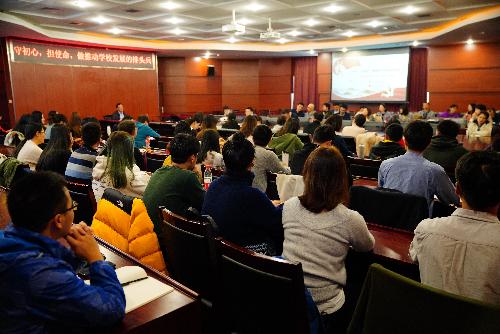 10月30日下午,根据学校党委“不忘初心、牢记使命”主题教育工作部署,番号鸽 于博纳楼第七会议室组织召开“守初心,担使命,争做推动学校发展的排头兵”主题党课,特邀学院党委书记王明会主讲,畅谈劳经人的“使命”与“初心”。学院全体教师党员、本学期发展对象等参加了党课。