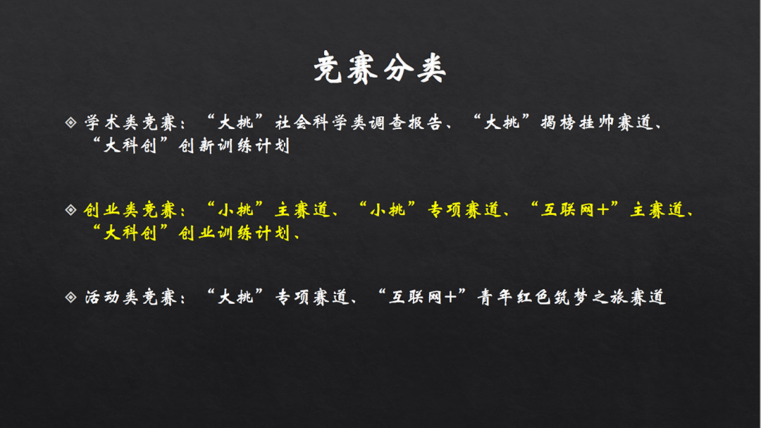 “挑战杯”全国大学生课外学术科技作品竞赛是由共青团中央、中国科协、教育部、全国学联主办的大学生课外学术科技活动中一项具有导向性、示范性和群众性的竞赛活动。挑战杯竞赛分为三大类:学术类竞赛、创业类竞赛和活动类竞赛。今年举行的“挑战杯”全国大学生创业计划竞赛,简称“小挑”,属于三大类竞赛中的创业类竞赛,包含主赛道和专项赛道,隔年举办。