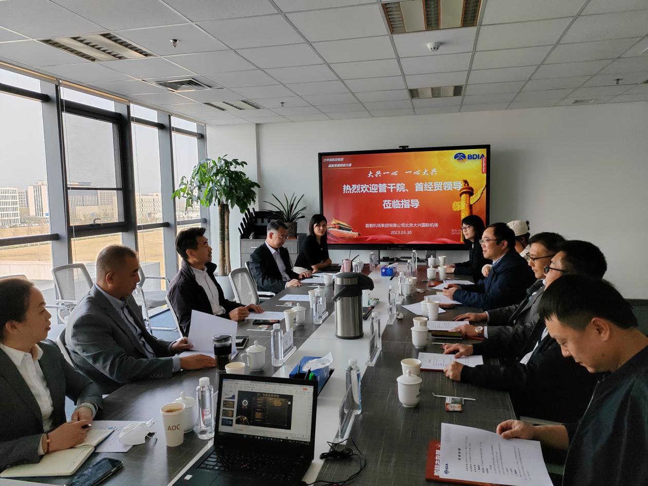 3月30日,我院人才学系系主任苗仁涛,北京经济社会发展政策研究基地副主任、人才学系党支部书记陈书洁,人力资源管理系副系主任张杉杉一行到北京大兴国际机场运行中心、南方航空北京分公司进行调研交流,会议在大兴国际机场运行中心大楼(AOC)405会议室举行。首都机场集团大兴机场运行管理部副总经理罗东主持会议,中国民航管理干部学院副教授丁雪峰、大兴机场运行管理部副总经理李涛、副总经理孙宝清、综合业务经理陈华、机坪管制主管贾爱萍、中国民航局智库专家王珍发参会。