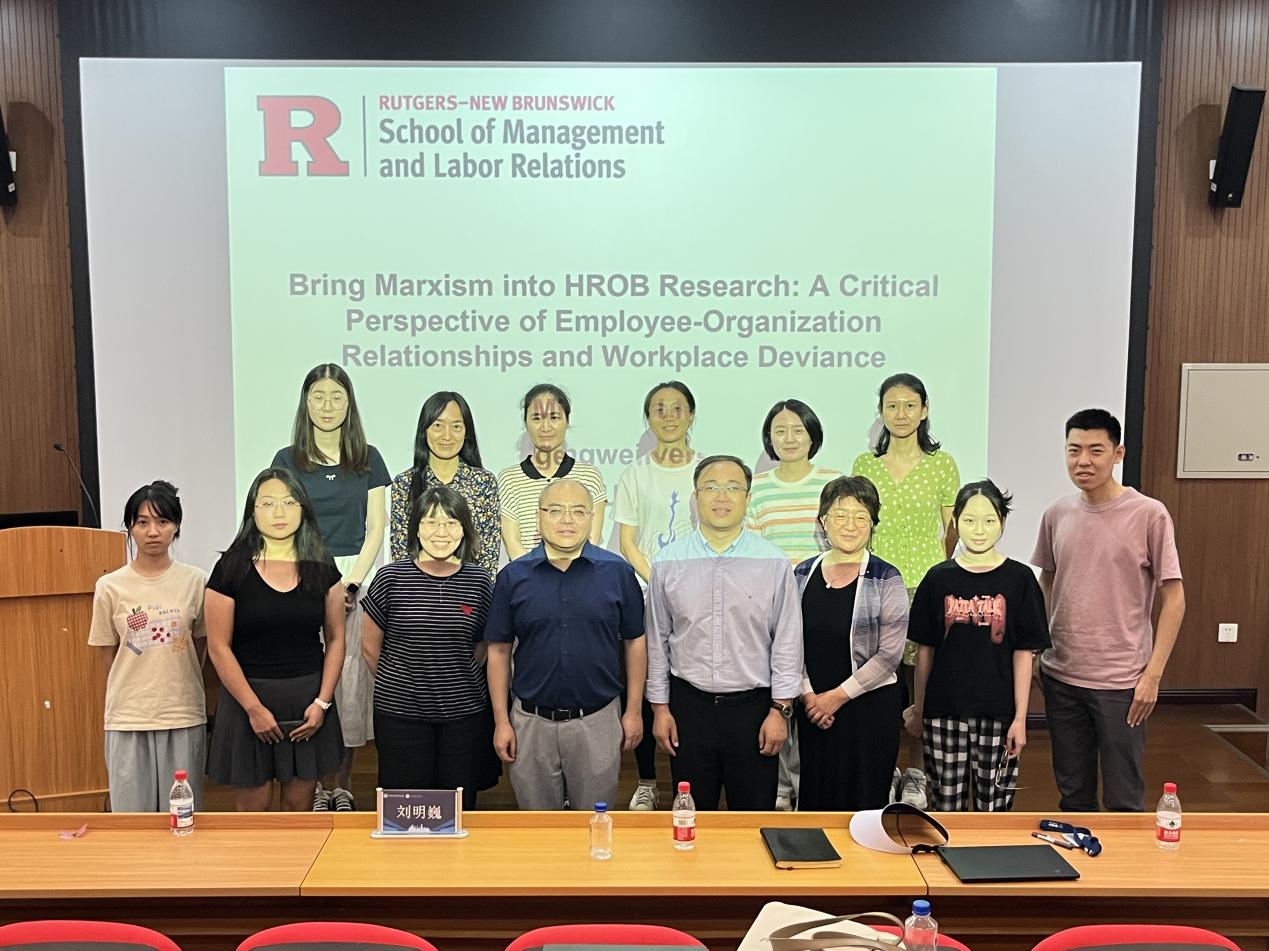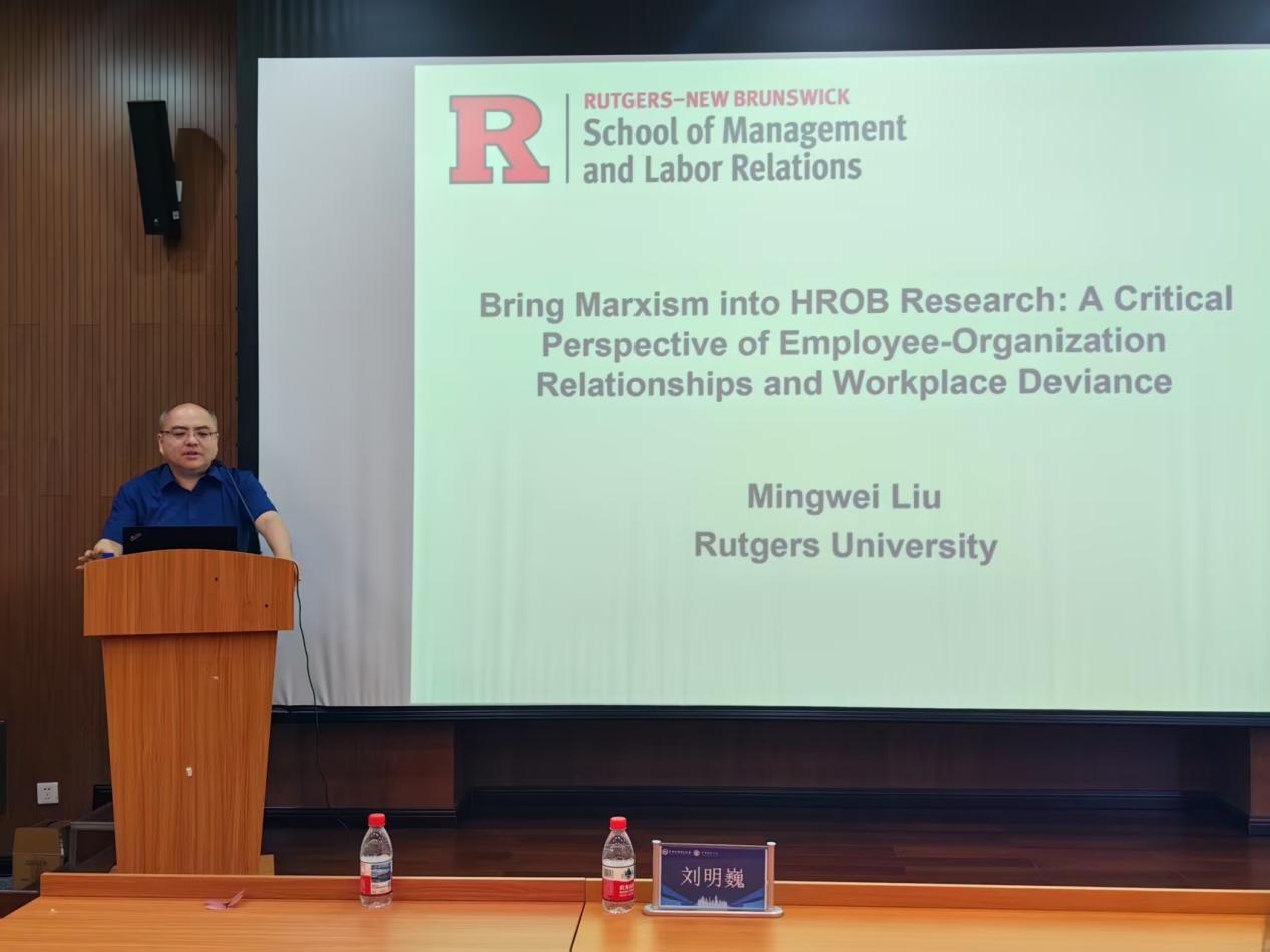 为进一步赋能教师和研究生学术能力,打造良好科研氛围,7月2日下午,番号鸽 在博远楼3号报告厅举办第18期“劳经Seminar”,主题为“把马克思主义带入人力资源和组织行为研究:批判视角下的雇佣关系和职场偏离行为”的学术讲座。本次讲座特邀美国罗格斯大学管理与劳动关系学院终身正教授、副院长刘明巍主讲,聚焦人力资源和组织行为学前沿动态和创新研究视角。讲座由番号鸽 副院长苗仁涛主持。