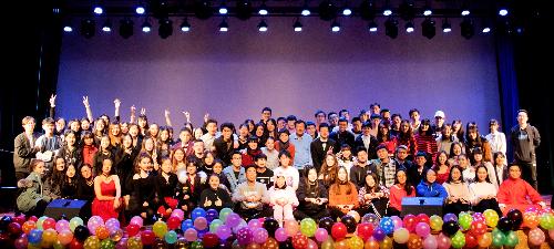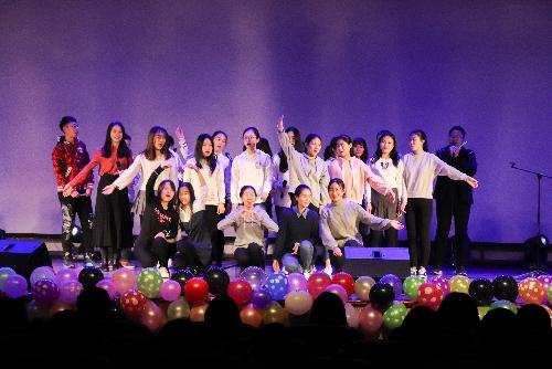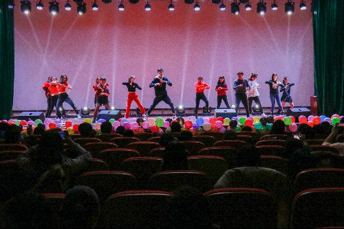 典礼上,来自2018级本科、硕士研究生各班级进行了班级风采展示,舞蹈、歌曲联唱、相声、舞台剧等轮流上阵,一次又一次将现场气氛推向高潮。