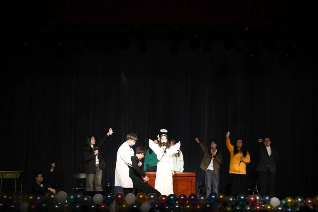 绘光影明暗,品戏剧人生。劳动经济学班和人力资源管理国际班采用光影戏的表演形式,向大家讲述了一个关于勇敢、坚持与超越自己的故事。表演者的默契配合让台下观众沉浸在光影戏剧中,向我们诉说着“少年不惧岁月长,彼方尚有荣光在”的青春情怀。