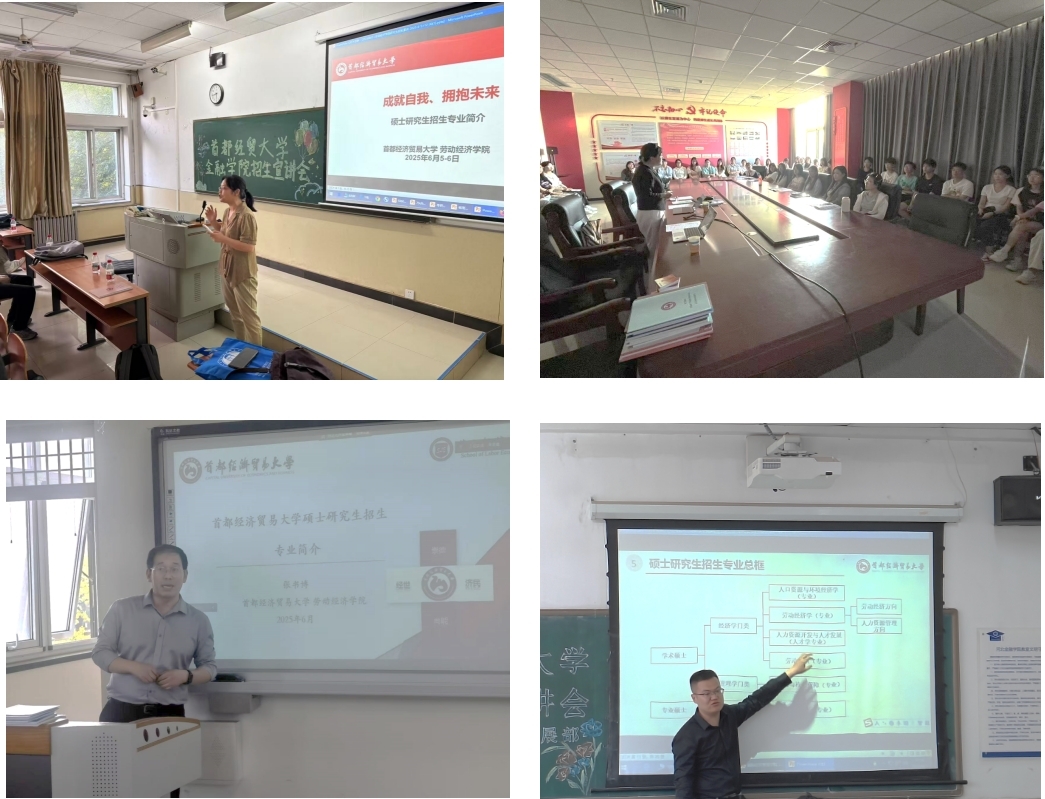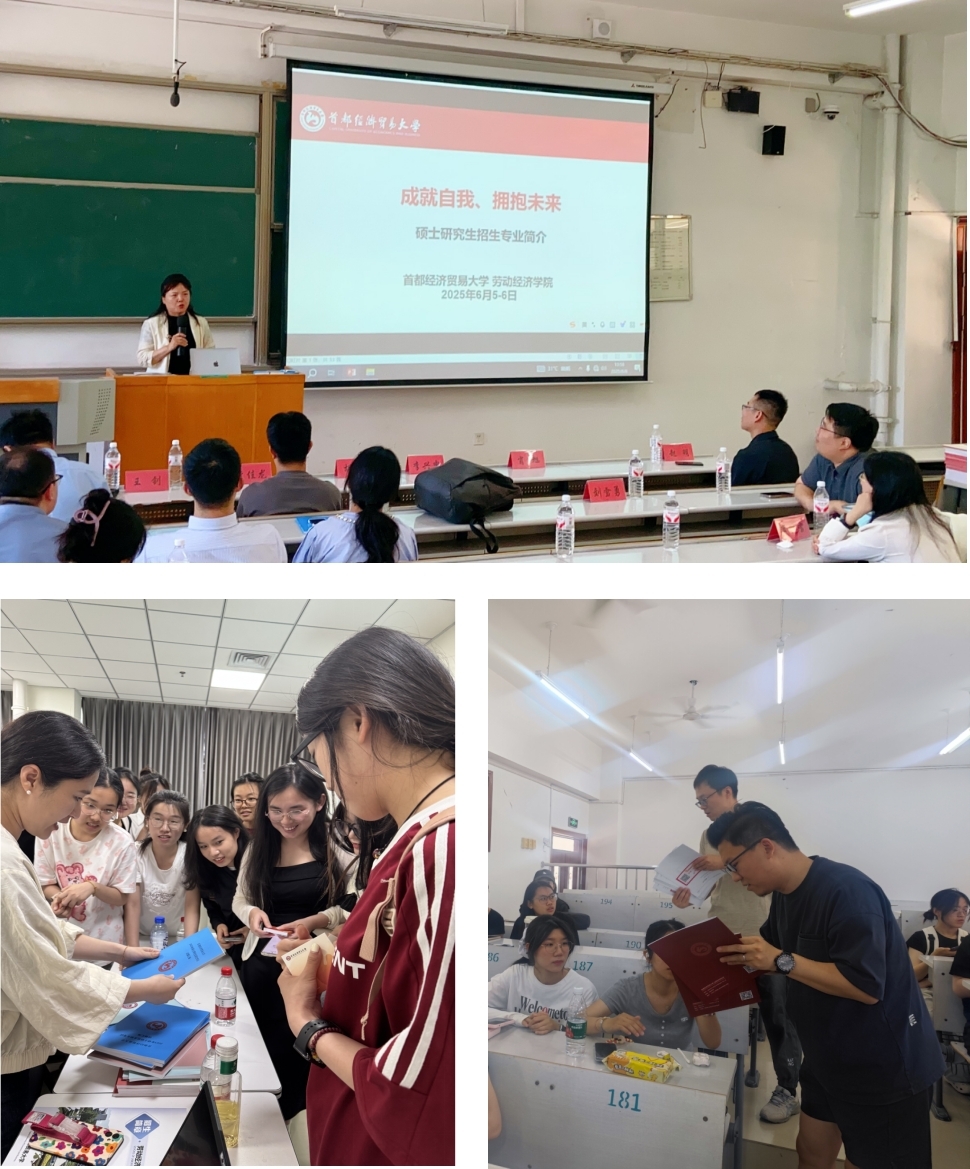 6月6日,劳经学院教师代表刘俐伶、雷晓天、李帆、张书博和杨之旭先后赴河北农业大学和河北大学,为两校同学进行研究生招生宣讲。刘俐伶详细介绍了劳经学院各招生专业的基本情况、学科优势,以及录取政策、人才培养模式和研究生就业前景。她强调劳经学院的各专业均聚焦“人”的行为与发展问题,未来就业岗位多为人工智能难以替代的方向。长期以来,劳经学院硕士研究生就业呈现“四高”趋势,即高就业率、高就业层次、高就业待遇和高就业满意度。