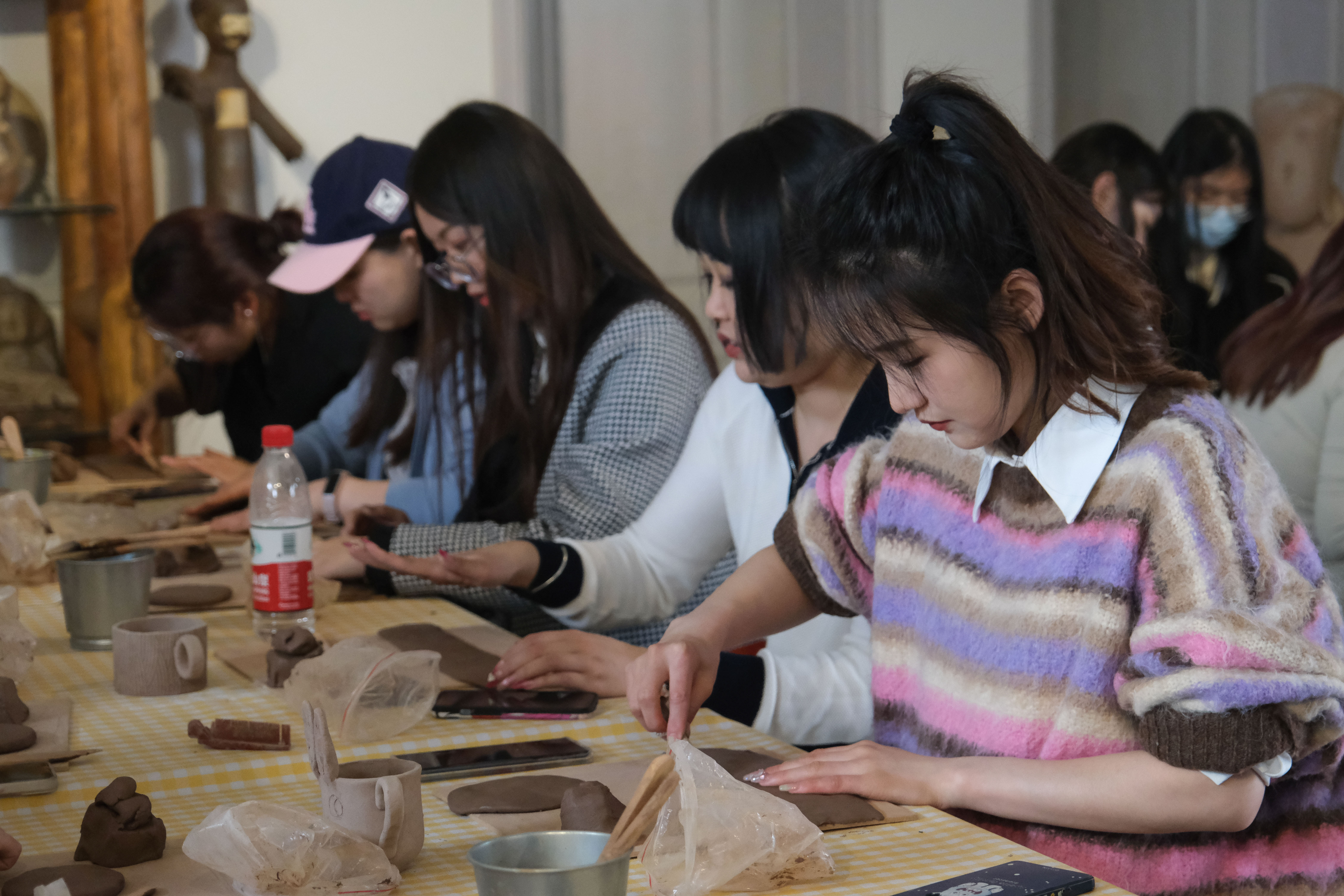 同学们在艺术家的带领下体验泥塑,跟随艺术讲解,感受传统文化的磅礴力量,以及艺术与乡村的互促和相融,加深对多元治理的理解,同时,也在艺术和劳动的双重体验中感受乡村发展的幸福,坚定服务乡村振兴的决心。