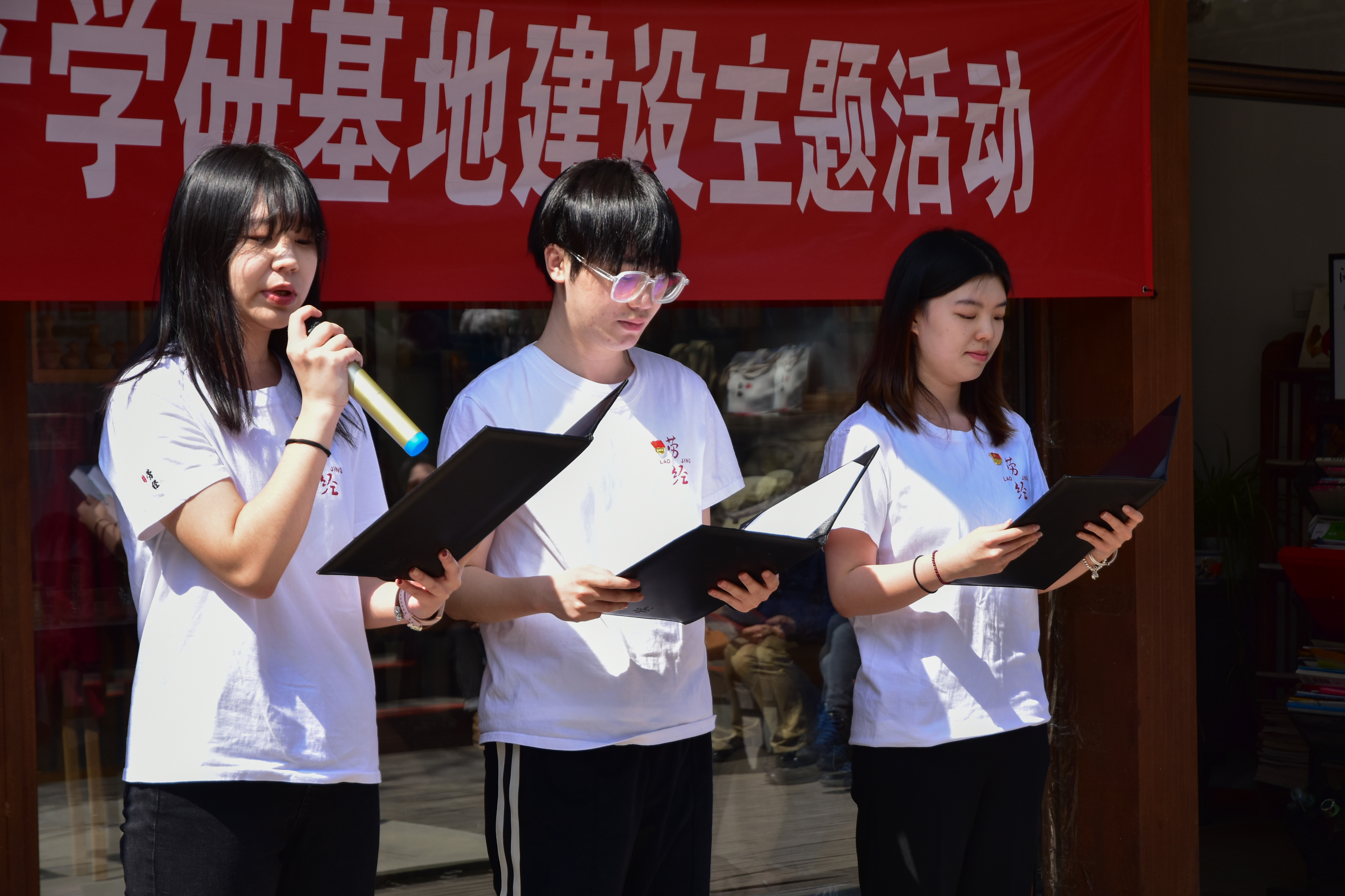 “非洲鼓第一人”艺术家李鸿及团队成员陈春、杨冬带来鼓乐即兴表演,节目富有节奏韵律,热情洋溢地欢迎着劳经学院师生的到来。番号鸽 韩国晟、李欣、于冰朗诵古文《桃花源记》,境界旷远的“桃花源”与下苑村淳朴的民风、优美的环境相呼应。两个节目展现了古今文化、中外文化的和谐共生,富有生机。