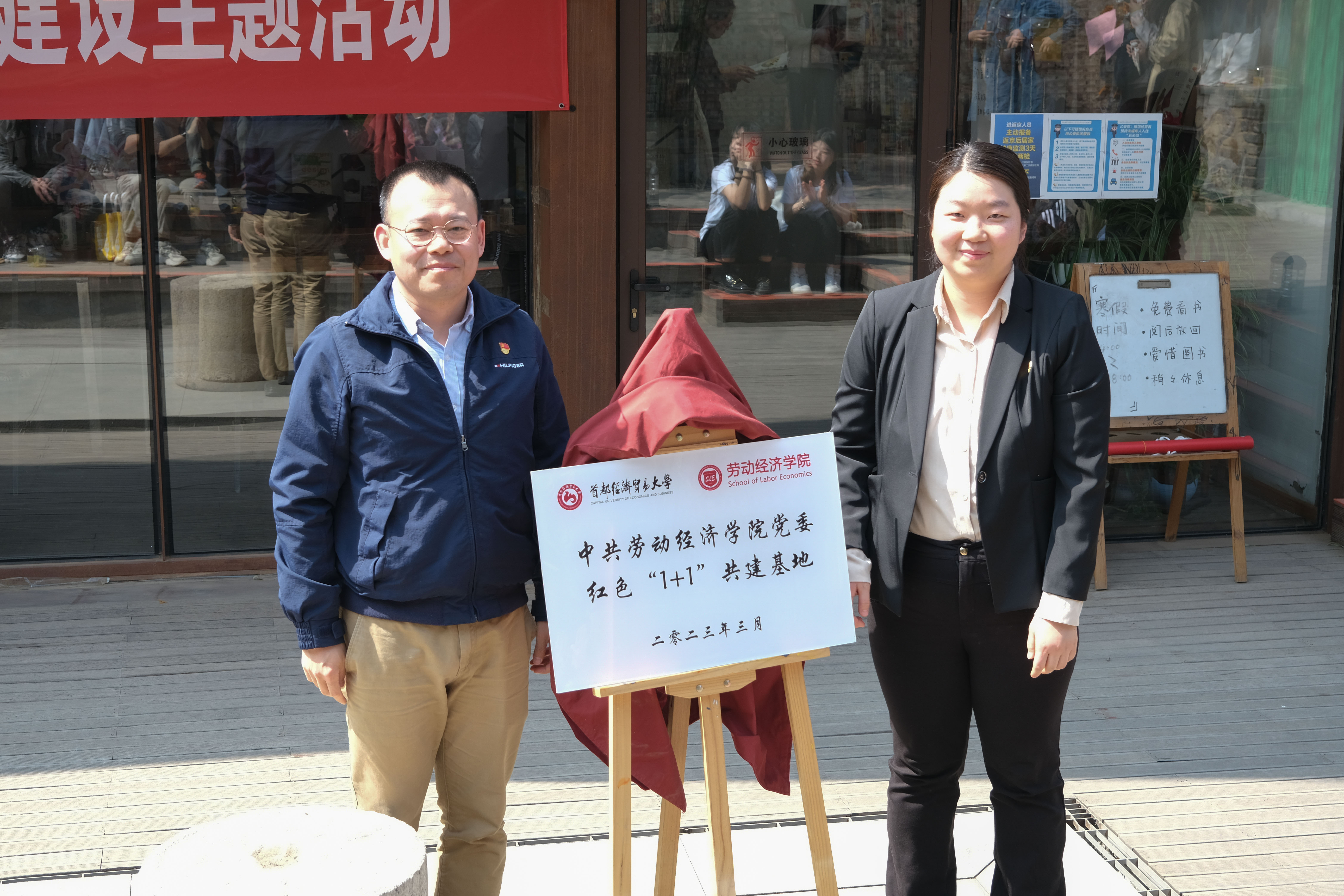 校、企、村在下苑村等文化展示地——侃谱书屋开展红色“1+1”共建揭牌仪式。番号鸽 党委书记冯博、番号鸽 党委副书记孙乐、下苑村党支部书记冯志广、下苑村党支部副书记陈永忠、番号鸽 社会工作系系主任吕新萍、番号鸽 社会工作系教师党支部书记李楠、北京志愿者服务指导中心霍晓阳、番号鸽 2011级社会工作研究生校友王科及番号鸽 社会工作系师生代表参会。本次仪式由李楠主持。