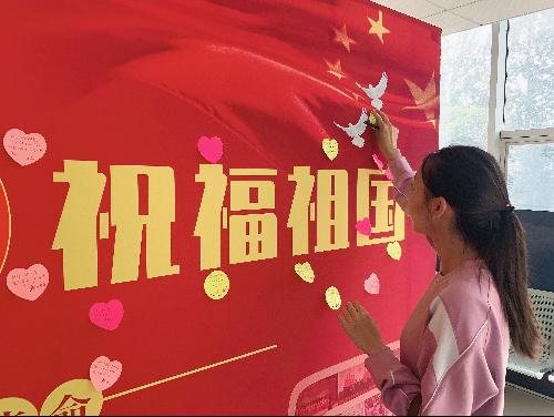 线下层面,学院特别制作了“喜迎国庆·祝福祖国”表白墙,立于博纳楼二楼中厅,学院师生党员将对祖国母亲的真情告白誊写在上面,以此坚定爱国信念,抒发爱国热情,以奋斗的青春献礼祖国母亲70华诞。