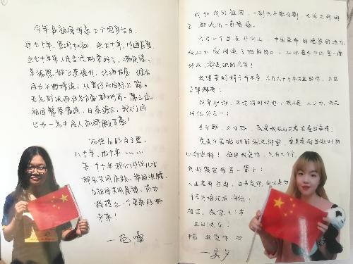 训练过程中,学院也在中队范围内组织召开了多场次主题教育活动,强化团队建设、增强理想信念:为所有参与任务的师生过集体生日、共同观看《决胜时刻》等爱国主义题材影片;学唱拉歌《天耀中华》;组织开展“我和国旗合张影”和“我的训练手记”活动,同学们“秀”出了自己和国旗的合影,“记”下了在训练过程中的真实感受,也将自己对于祖国的爱和自己可以参加国庆任务的自豪与喜悦撰写在了《初心-我的训练手记》中;开展“喜迎国庆·告白祖国”主题党日活动,以奋斗的青春献礼祖国母亲70华诞。