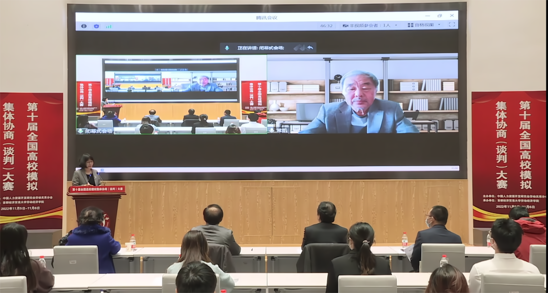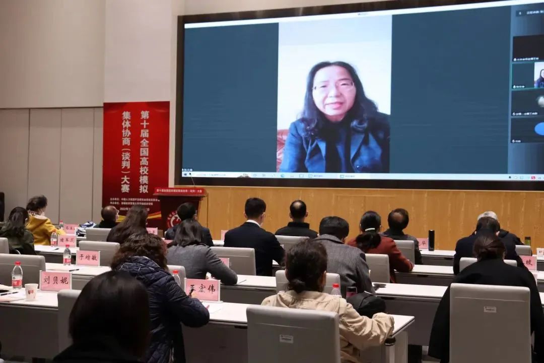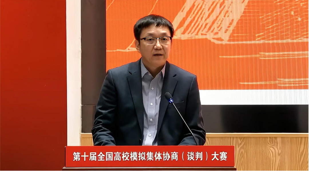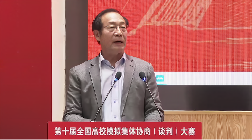 常凯在为大赛寄语中向大赛组织方、评委和参赛师生表示感谢。他希望广大师生继续深耕劳动关系研究,强调集体协商制度应有工会参与并发挥重要作用,建议参赛队伍走进田野,去企业调研,观摩工会和企业如何谈判以进一步提高水平。