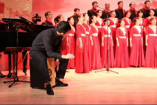 本次比赛,学院选择的合唱曲目是《中国 中国,鲜红的太阳永不落》和《我的中国心》,融入了朗诵、轮唱等多种表演形式,并在钢琴伴奏的基础上添加了打击乐器卡洪箱鼓,为两首经典红歌添加了诸多新潮元素。