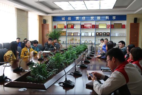 稍事休息后,同学们于会议室向工会委员王立及人力资源人员提出了自己的疑问,问题五花八门,囊括了劳动者民主参与、集体协商、职业晋升、精神文明建设等方面。工会委员一一做了解答,并针对企业特色的员工沟通渠道:“问吧”、“圆桌会议”进行了详细描述。