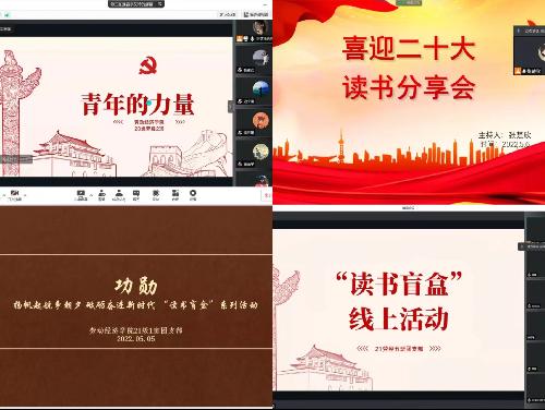 喜迎二十大,永远跟党走,奋进新征程。在建团100周年之际,为提升团员青年的思想水平,展现基层团支部的精神风貌,鼓励团员青年学习习近平总书记在人民大学考察时的重要讲话精神,体会总书记对新时代中国青年寄予的殷切期望和提出的明确要求,番号鸽 分团委组织“扬帆起航争朝夕,砥砺奋进新时代”读书盲盒主题团日活动,为各支部寄送红色学习书籍相互传阅分享。各班团支书带领团员青年们在线上热情讨论,感悟青年责任,树立远大理想,坚定跟党走。