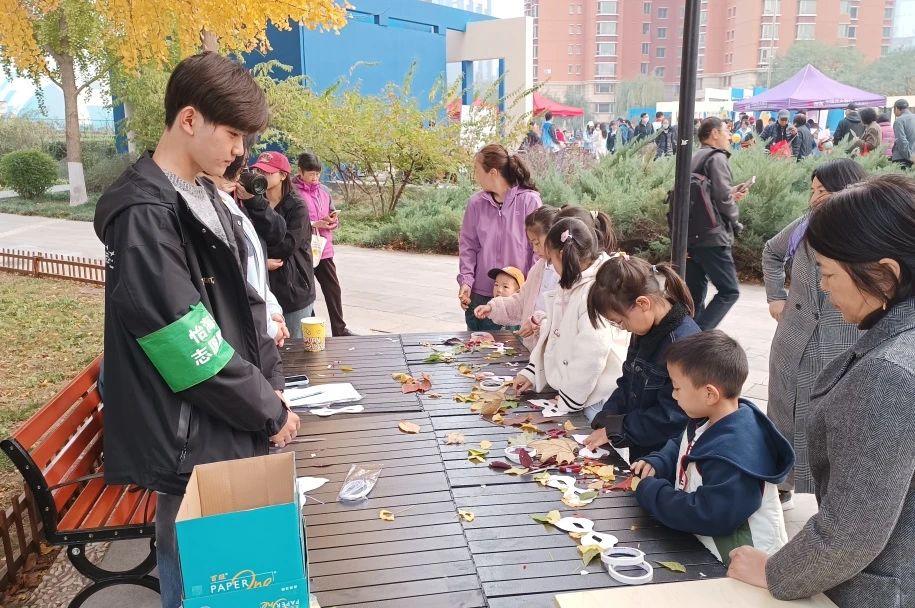 互动环节,志愿者们有序交接任务,奔赴不同岗位,确保活动高效开展。在制作秋日面具活动中,他们耐心指导小朋友做手工,孩子们的欢声笑语沁润着大家的心田,为稍显寒意的秋天带来一份温暖。