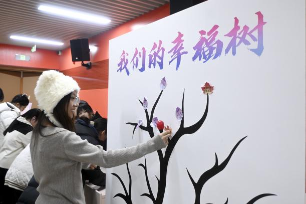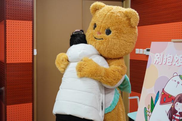 静态互动环节共设置了“遇见曼陀罗”“别抱怨抱我”“我们的幸福树”和“留下你的笑脸”四个富有趣味的小项目。在这里,同学们可以前往“遇见曼陀罗”描绘心情,可以在“别抱怨抱我”环节和黄油小熊紧紧相拥,也可以到“我们的幸福树”分享生活中的小确幸,还可以在“留下你的笑脸”中将快乐传递。