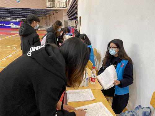 中午12点40分,番号鸽 的志愿者们在体育馆北门集合,提前进行上岗前的简短培训和任务分配。13点整同学们陆续到场,医生和志愿者们开始了紧张有序的工作和服务。