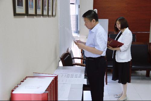 指导组首先审阅查看了学院党史学习教育工作开展相关记录和支撑材料,并对学院前一阶段的工作给予了肯定。