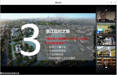 浙江省人才发展研究院院长、浙江大学博士生导师陈丽君教授以《后疫情时代国内外人才竞争和应对》为题,指出后疫情时代国际人才竞争出现的新态势与包括“粤浙人口再聚集”、都市圈时代的到来在内的国内人才流动和竞争的态势。同时,她就浙江省所进行的“建设强大高素质人才队伍,打造高水平创新型省份”的应对之策进行了介绍。最后她指出了人才链推进的五链融合的重要性。