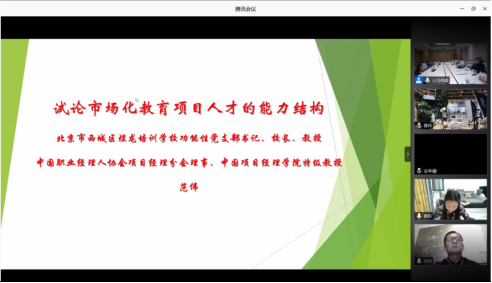 北京市西城区煜龙培训学校功能性党支部书记、校长范伟教授以《试论市场化教育项目人才的能力结构》为题,将市场化教育项目人才能力结构划分为基础能力、项目通用性管理能力、教育项目专用性管理能力。