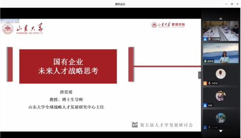 山东大学管理学院人力资源管理系唐贵瑶教授以《国有企业未来人才战略思考》为题,提出国有企业应加强市场化人才管理,提高人才专业化水平,挖掘人才国际化潜能,坚持党管人才。