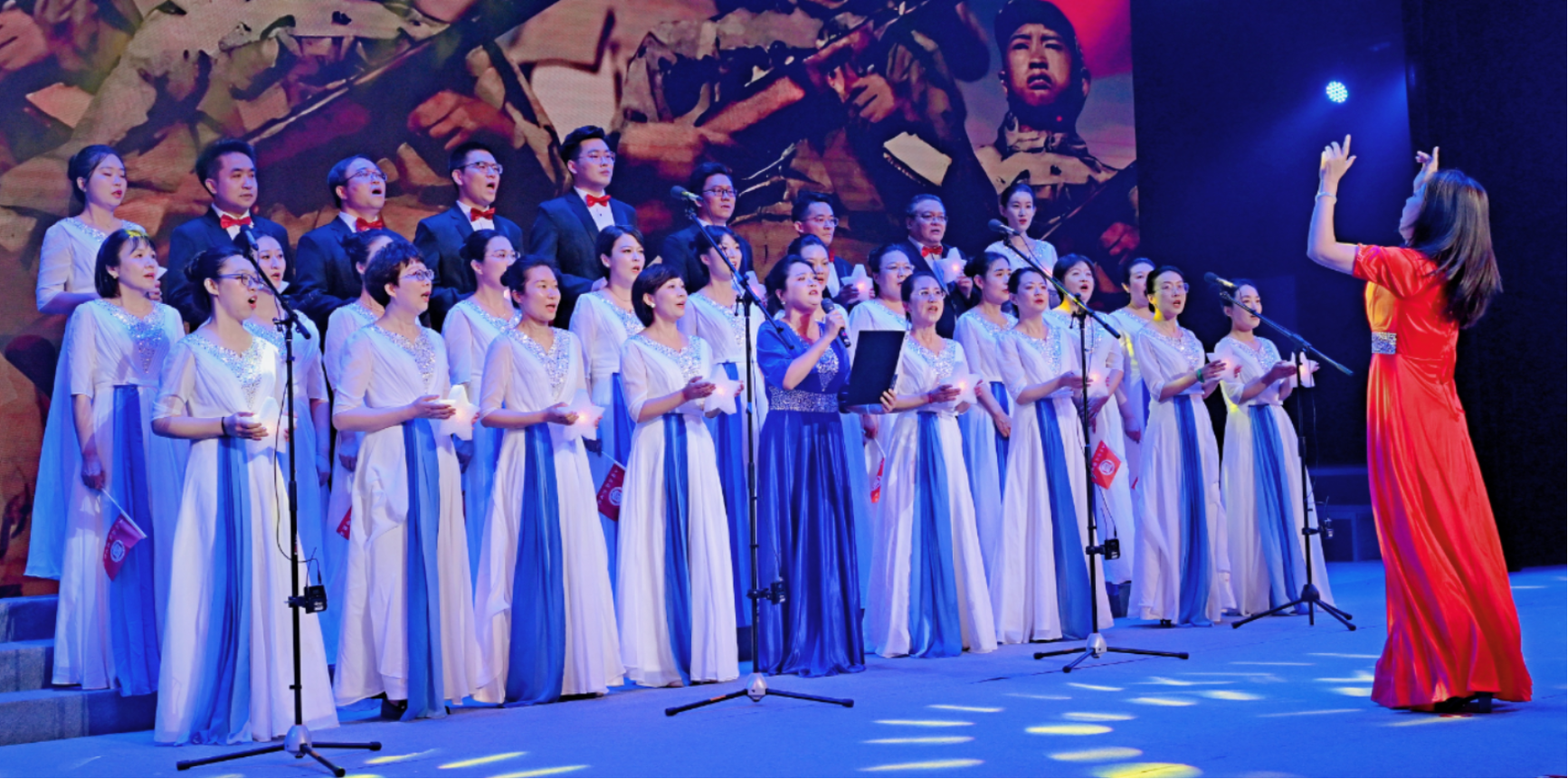 学院教师们精神抖擞、意气风发,唱响震撼人心的《英雄赞歌》。伴随着激昂的旋律,教师们全情投入,用整齐嘹亮的歌声,深情歌颂着英雄的壮举,每一个音符都饱含着对英雄的敬仰和对祖国的热爱,旋律中洋溢着蓬勃的朝气与昂扬的斗志,仿佛将听众带回战火纷飞却又激情燃烧的岁月,让人深刻感受到英雄精神的不朽力量。