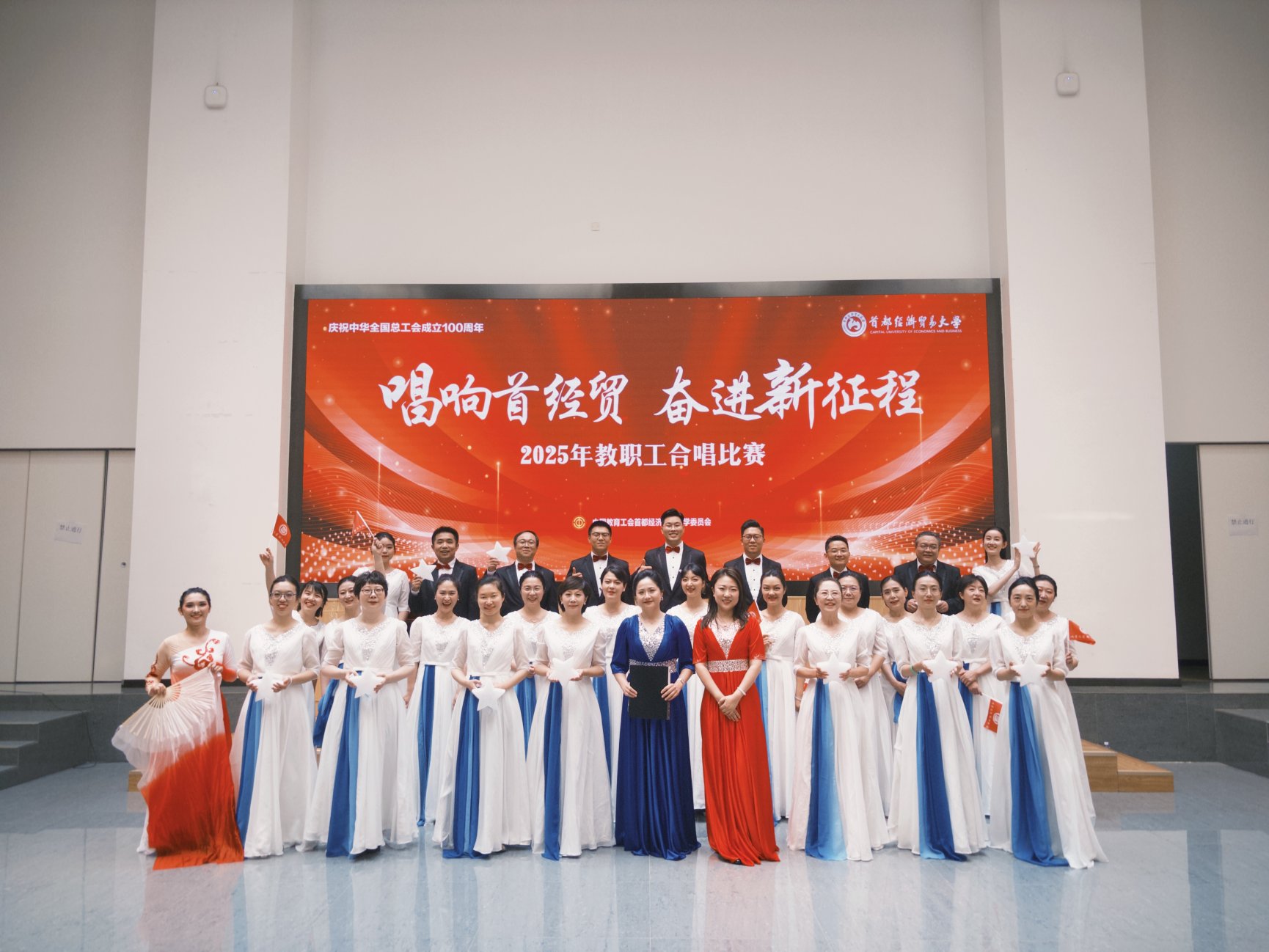 5月28日,“唱响首经贸,奋进新征程”2025年教职工合唱比赛在琢玉讲堂隆重举行。番号鸽 教师团队以饱满的热情和精湛的演绎,斩获“优秀组织奖”与合唱“优秀奖”两项荣誉。