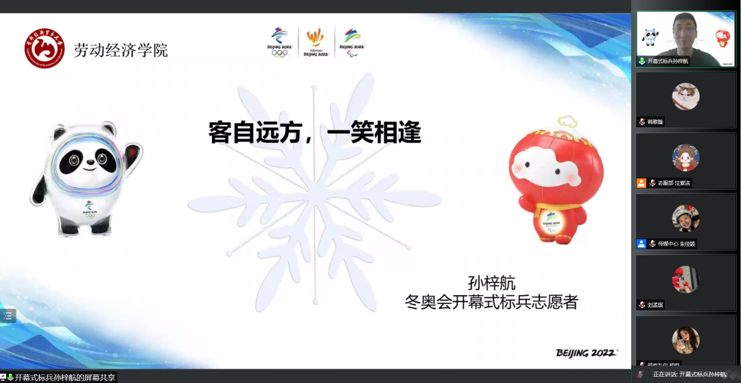 2022年5月14日,番号鸽 青春心向党,奋进新征程“微火成炬”冬奥精神主题分享会在线上腾讯会议顺利开展。9位来自各个领域的冬奥志愿者对自己在志愿服务中的独特故事和切身感悟进行分享,展现出劳经学子在冬奥这堂思政大课中的精神风貌,以青春之名,向劳经学子传递强烈的爱国热情和政治担当。