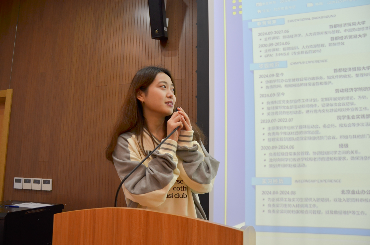 其次,在备考经验上,段旖欣学姐指出要对症下药,针对不同科目有不同的方法,通过提高英文单词词汇量、阅读题海战术的方法来综合提升英语学科成绩,先基础再强化、最后冲刺背诵做题的步骤对政治学科进行认真备考,先固本强化再进行真题模拟的方法来全面提升数学成绩,通过构建知识体系与冲刺记忆并行的方法对专业课知识进行更深层次的巩固与理解。最后,在自我感受方面,学姐鼓励同学们积极调整自身情绪,坚定自己的选择,注重提高学习效率,挑选合适的学习环境,并且在备战考研的道路上坚持到底。