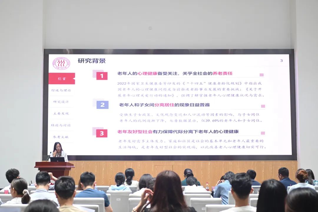 主论坛第二部分发言人进行分享。河北大学的杨一丹同学首先作题为《人口规模与质量对技术扩散的影响:OECD国家的经验和启示》的报告,研究考察了人口规模和质量对技术扩散的影响及其作用机制。中南财经政法大学的李婕妤同学作题为《义务教育如何影响性别不平等?》的报告,研究探讨义务教育政策的实施与我国性别平等的关系。西安交通大学的武媛媛同学作题为《互联网使用与老年人养老资本:促进还是抑制?》的报告,研究考察了在当前老龄化与数字化并存的背景下,互联网使用与老年人养老资本关系。北京航空航天大学的王禹熙同学作题为《超大城市流动青年社会认同之路有多远?——基于北京流动青年租房现状的实证分析》的报告,该研究从流动人口租房现状角度探讨了流动人口社会认同影响机制。北京市委党校的赵政同学作题为《有序的非平衡:京津冀城市群人口系统自组织协同集聚趋势分析——基于第七次人口普查数据》的报告,该研究基于系统自组织理论,对京津冀城市群人口系统协同发展进行分析。五篇论文汇报后,番号鸽 童玉芬教授进行点评,就主题与内容的契合性、论文创新性、研究变量的选取等方面提出了详细的建议。