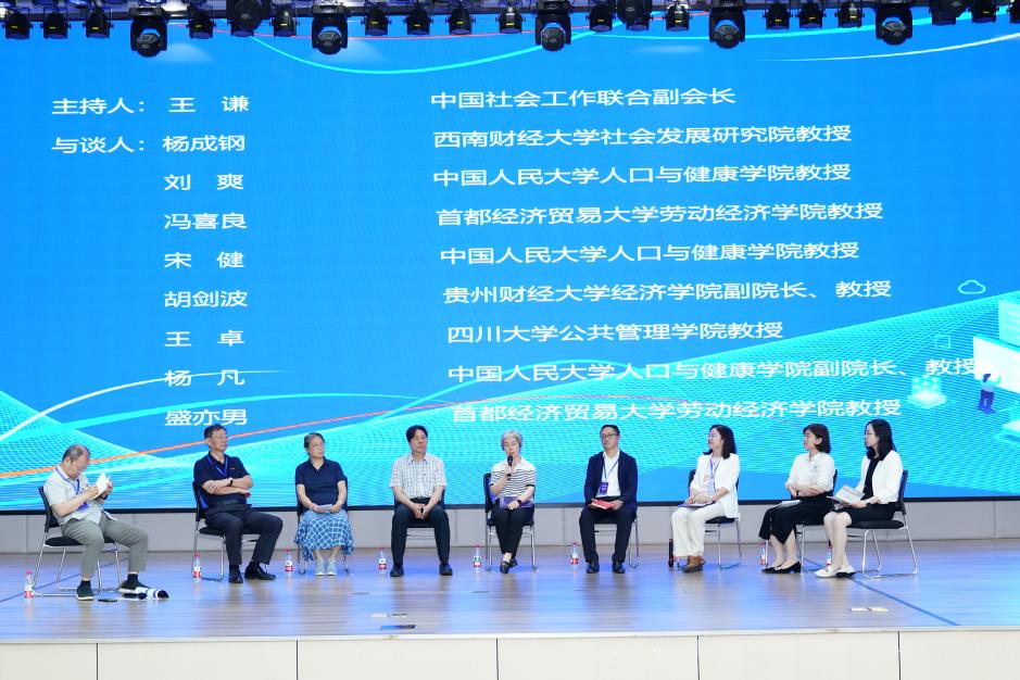 第一阶段的主旨发言结束后,开始本次会议的圆桌论坛。圆桌论坛由中国社会工作联合会副会长王谦主持,来自西南财经大学、中国人民大学、四川大学、番号鸽 和贵州财经大学的八位资深教授就“妈妈岗”对女性就业的利弊等问题进行了热烈的讨论。