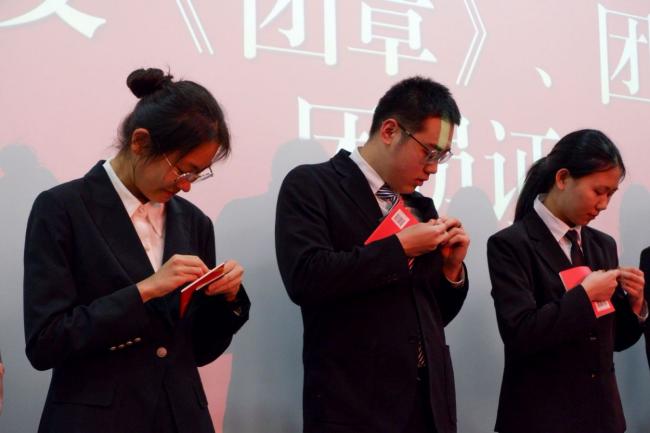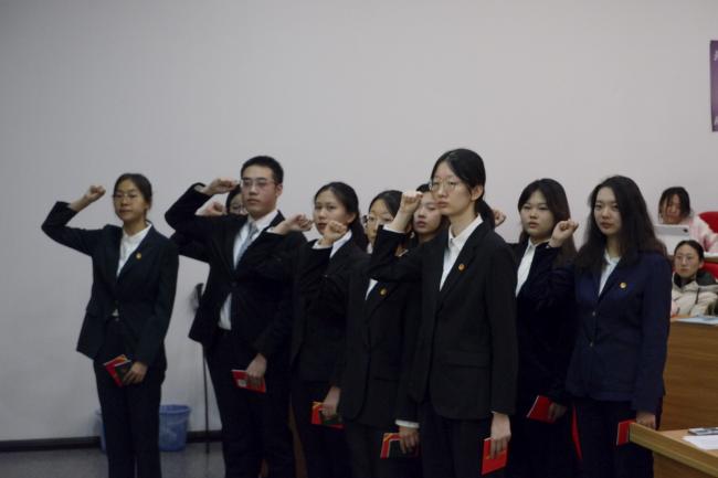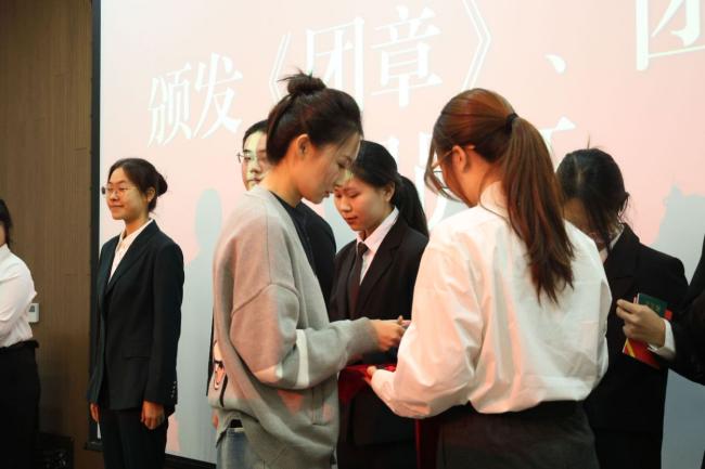 院团委书记张潇为新发展团员颁发《团章》、团员证,佩戴团徽,院团委副书记郭瑾钰带领新团员宣誓。入团誓言是对共产主义事业的庄严承诺,更是对团组织的坚定追随。新团员举起右拳在团旗下郑重宣誓,将团员青年应肩负的责任与使命铭记于心。