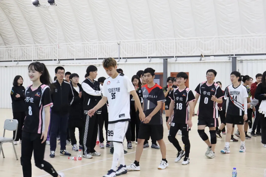 第二局双方易边再战,在场下观众的鼓舞以及场上队员之间相互的鼓励下,劳经一队的队员们保持稳定的心态,开局郑澤世与努尔扎提便成功拦下对方主攻的扣球,随后陈镭华与马毅怡发球连续得分,开局便打出了6-0的小高潮反超了管工队的加分优势,随后管工队继续展示他们的铁血防守,连连下地救球,但对方的失误也随着比赛的愈演愈烈逐渐增多,反观劳经一队则是频频拦网,稳定发挥接球扣球,最终以25:19的成绩扳回一局。