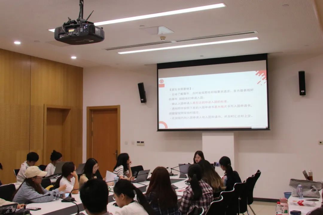 分团委组织部部长田雨彤梳理了党员发展的相关流程与政策,并着重讲解了在党员发展中团支书需要注意的相关内容,帮助团支书熟悉流程,明确自身责任。