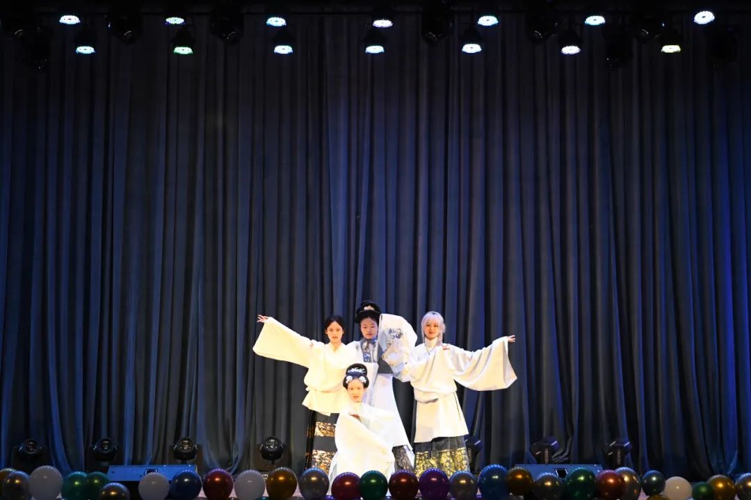 “人生到处知何似, 应是踏雪飞鸿, 更是烟雨平生。醉太平之世, 理千年文脉, 正华夏史观。”伴随着悠扬的曲声,四位表演者身着汉服优雅登场,一曲《醉太平》,婉转悠长,韵味十足,旋律由舒缓到激昂,曼妙舞姿演绎盛世的繁华光景,寓意着美好生活的来之不易。