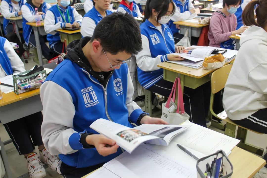 北京市第十八中高三年级主任甄兆敏、高三四班班主任井雪,番号鸽 分团委副书记(主持工作)、兼职辅导员韩国晟,22级劳经班团支部书记刘芳利、文体委员战墨菡及高三四班全体同学参与活动。